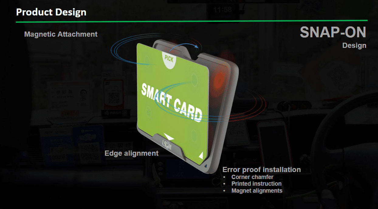 Design highlight- The world first invention of tolling card passive tag with magnetic attachment (no mechanical parts) so the product life has significantly extended